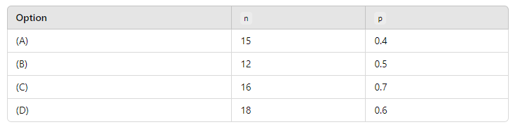 Variance=18⋅0.6⋅ (1−0.6) =18⋅0.6⋅0.4=4.32, Now, arrange them in increasing order of their variance: Thus, the correct order is (B), (C), (A), (D).