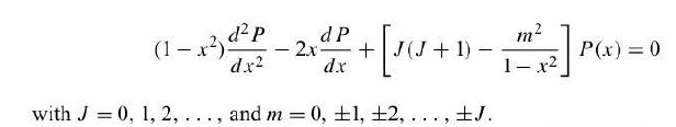 for P(x) is called Legendre's equation and is a well-known equation in classical physics. It occurs in a variety of problems formulated in spherical coordinates.