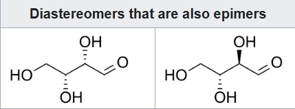 In stereochemistry, diastereomers (sometimes called diastereoisomers) are a type of stereoisomer. Diastereomers are defined as non-mirror image, non-identical stereoisomers. Hence, they occur when two or more stereoisomers of a compound have different configurations at one or more (but not all) of the equivalent (related) stereocenters and are not mirror images of each other. When two diastereoisomers differ from each other at only one stereocenter, they are epimers.