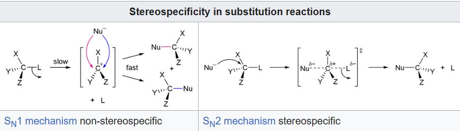 A stereospecific mechanism specifies the stereochemical outcome of a given reactant, whereas a stereoselective reaction selects products from those made available by the same, non-specific mechanism acting on a given reactant. Given a single, stereoisomerically pure starting material, a stereospecific mechanism will give 100% of a particular stereoisomer (or no reaction), although loss of stereochemical integrity can easily occur through competing mechanisms with different stereochemical outcomes. A stereoselective process will normally give multiple products even if only one mechanism is operating on an isomerically pure starting material.