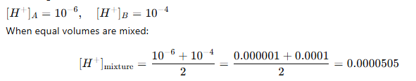 pH = –log(5.05 × 10⁻⁵) ≈ 4.3 So, pH lies