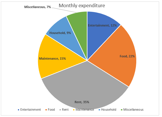 Expenditure on rent is 35% and expenditure on entertainment is 12%