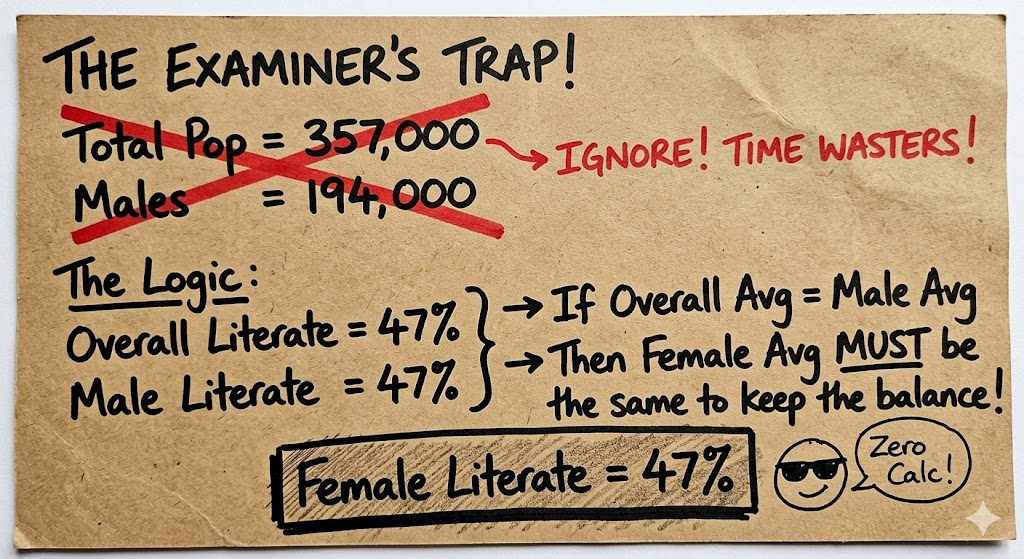 Percentage of literate females = (Literate females ÷ Total females) × 100