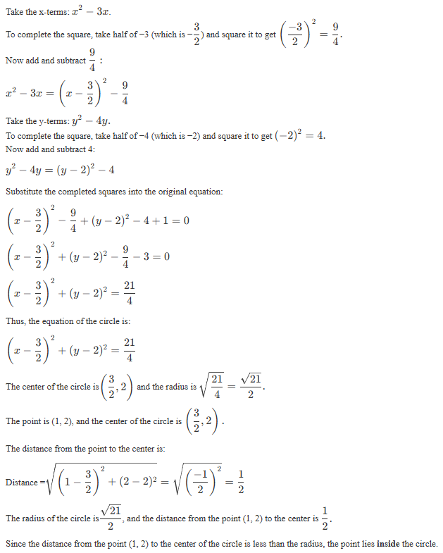 Since result < 0, the point lies inside the circle.