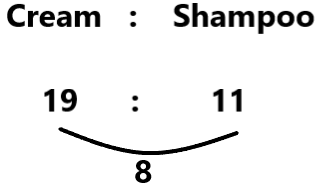 Ratio of prices of cream to shampoo = 19 : 11
