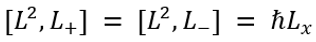 The commutator between the total angular momentum L2 and these raising and lowering operators is zero because applying these operators does not change the total angular momentum magnitude L2.