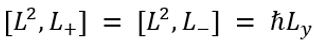 The commutator of L2with the raising and lowering operators is zero because they do not affect the magnitude of the total angular momentum. Instead, they modify only the Lz component.
