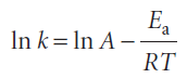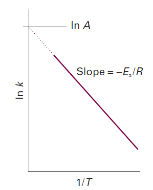 It is found experimentally for many reactions that a plot of ln k against 1/T gives a straight line. This behaviour is normally expressed mathematically by introducing two parameters, one representing the intercept and the other the slope of the straight line, and writing the Arrhenius equation