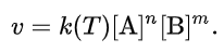 In these equations k(T) is the reaction rate coefficient or rate constant, although it is not really a constant, because it includes all the parameters that affect reaction rate, except for time and concentration. The exponents n and m are called reaction orders and depend on the reaction mechanism. For an elementary (single-step) reaction, the order with respect to each reactant is equal to its stoichiometric coefficient. For complex (multistep) reactions, however, this is often not true and the rate equation is determined by the detailed mechanism.