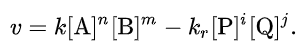 For a chemical reaction aA + bB → pP + qQ, the rate equation or rate law is a mathematical expression used in chemical kinetics to link the rate of a reaction to the concentration of each reactant. For a closed system at constant volume, this is often of the form