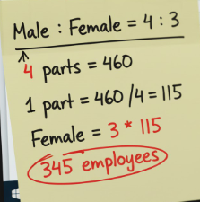 The ratio of male and female employees in a multinational company is 4 : 3. If there are 460 male employees in the company, then find the number of female employees.