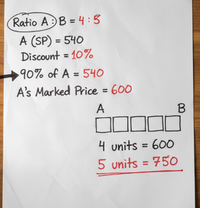 The ratio of marked price of two articles A and B is 4 : 5 respectively. If 10% discount allowed on article A and the selling price of article A is Rs 540, then find the marked price (in Rs) of the article B?
