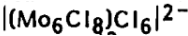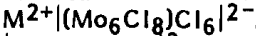 The Mo-Mo and Mo-Cl distances are about 2.60 and 2.47Å respectively. The six apical, terminal, Cl ligands lead to a quasi undeformed octahedral site (point group symmetry D3d) occupied by the M2+ cation.
