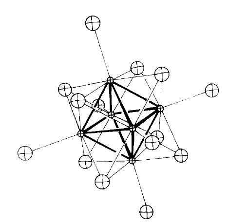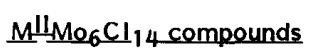 These ternary molybdenum +II chlorides exhibit a diamagnetic behavior except in the case of 3d (V, Cr, Mn, Fe, Co, Ni) or Eu and Yb element compounds which show M2+ion paramagnetism (high spin configuration for 3d-cation compounds) : effectively, from molybdenum electronic state and anionic and cationic charge transfers, one can derive a number of 24 valency electrons per cluster corresponding to twelve two-electrons Mo-Mo bonds directed alongside the edges of the Mo6 octahedra.