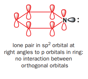 In the five membered ring, the lone pair on the nitrogen atom are involved in conjugation and thus are not available for donation.