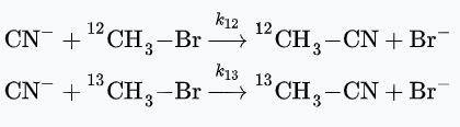 A kinetic isotope effect (KIE) is the change in the reaction rate of a chemical reaction when one of the atoms in the reactants is replaced by one of its isotopes. Formally, it is the ratio of rate constants for the reactions involving the light (kL) and the heavy (kH) isotopically substituted reactants (isotopologues): KIE = kL/kH.