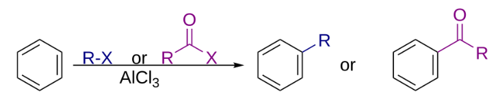 The Friedel–Crafts reactions are a set of reactions developed to attach substituents to an aromatic ring. Friedel–Crafts reactions are of two main types: alkylation reactions and acylation reactions. Both proceed by electrophilic aromatic substitution.