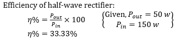 The rectifier efficiency of a half-wave rectifier is ____________ if the input power to the rectifier is 150 W and output power is 50 W.