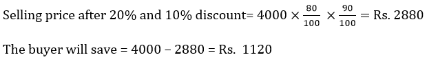 The selling price of a bicycle is 4,000 taka. How much money will the buyer save if he gives a discount of 20% and 10% twice in a row when selling the bicycle?