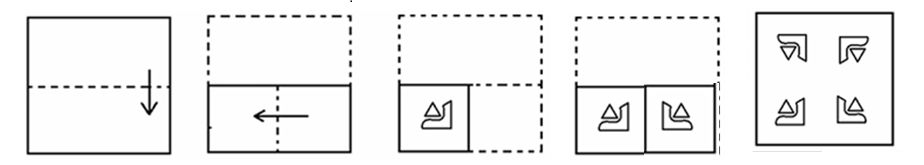 The sequence of folding a piece of paper and the manner in which the folded paper has been cut is shown in the given figures. How would this paper look when unfolded?