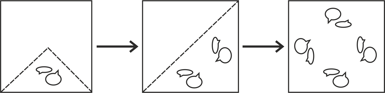 The sequence of folding a piece of paper and the manner in which the folded paper is cut is shown in the following figure. How would this paper look when unfolded?