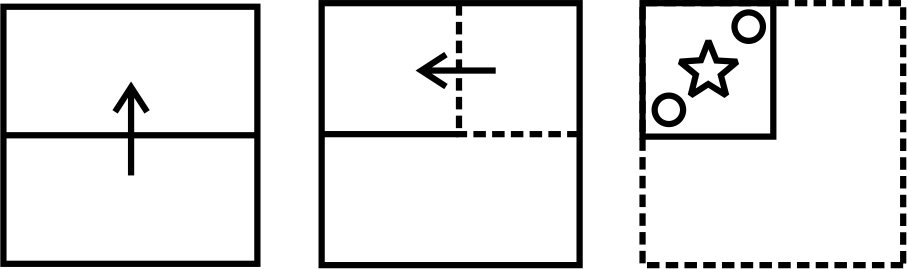 A square sheet of paper is unfolded along the directions shown: