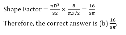 The shape factor (also known as the section modulus) for a solid circular section is calculated based on its geometry and is used to assess its strength. For a solid circular section, the shape factor S is given by:
