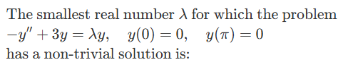 For λ∈R, consider the system of differential equations:x1′=x1+2x2+2x3,x2′=2x2+x3,x3′=−x3+2x2+λx3.If x⃗(t)=a⃗ te2t (for some a⃗) is a solution of the system, then the value of λ is equal to.\text{For } \lambda \in \mathbb{R}, \text{ consider the system of differential equations:} \\x'_1 = x_1 + 2x_2 + 2x_3, \\x'_2 = 2x_2 + x_3, \\x'_3 = -x_3 + 2x_2 + \lambda x_3. \\[10pt]\text{If } \vec{x}(t) = \vec{a} \, t e^{2t} \, (\text{for some } \vec{a}) \text{ is a solution of the system, then the value of } \lambda \text{ is equal to.}For λ∈R, consider the system of differential equations:x1′=x1+2x2+2x3,x2′=2x2+x3,x3′=−x3+2x2+λx3.If x(t)=ate2t(for some a) is a solution of the system, then the value of λ is equal to.