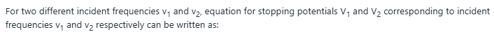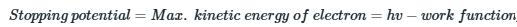 In photoelectric effect, the electron ejected posses some kinetic energy which is proportional to the frequency of incident radiation. Stopping potential is minimum potential that is needed to stop or slow down the ejected electron before it reaches the anode. Minimum potential that is needed, must be equivalent to the kinetic energy of electron, which is further related to the applied frequency (v) and the work function of metal as follows: