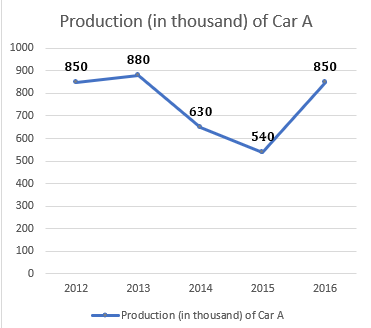 The production of car A in 2012 = 850