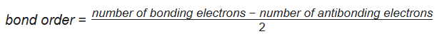 In molecular orbital theory, bond order is defined as half the difference between the number of bonding electrons and the number of antibonding electrons as per the equation below. This often but not always yields similar results for bonds near their equilibrium lengths, but it does not work for stretched bonds. Bond order is also an index of bond strength and is also used extensively in valence bond theory.
