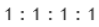 The ratio of electron density on all atoms is: 1:1:1:1.