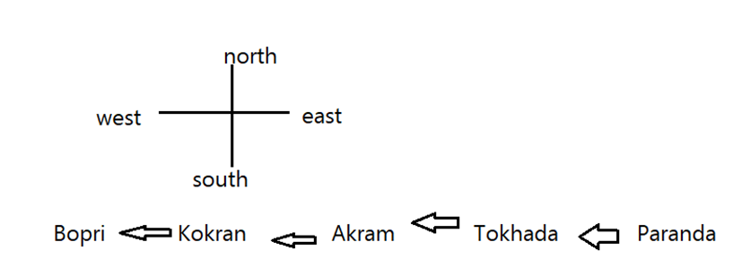 · Thus, the order from west to east is: Bopri, Kokran, Akram, Tokhada, Paranda.