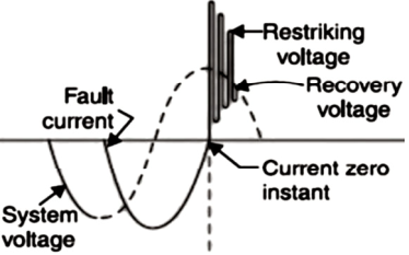 The current interruption in the circuit depends on the restriking voltage.