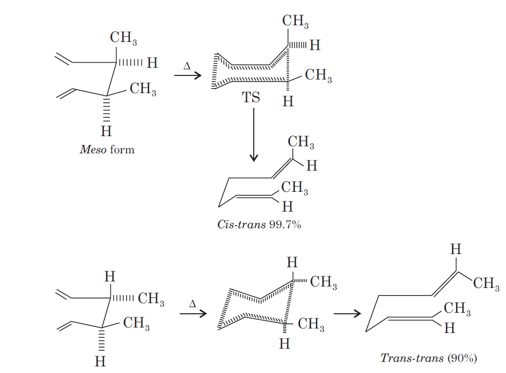 The Cope rearrangement usually proceeds through the chair like transition state. The stereochemical features of the reaction can usually be predicted and analysed on the basis of a chair transition state that minimizes steric interactions between substituents.