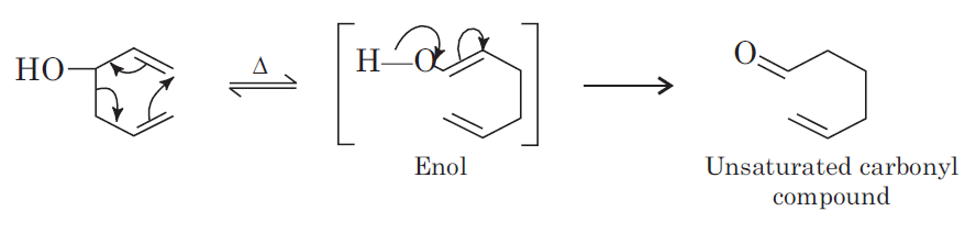 1, 5-Hexadiene-3-ol on heating undergoes Cope rearrangement with formation of unsaturated carbonyl compounds. Cope rearrangement given by such compounds is known as oxy-Cope rearrangement.
