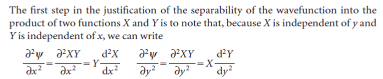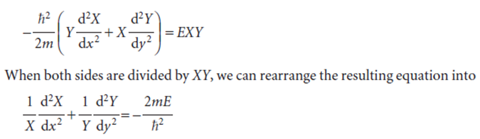 The separation of variables technique applied to the particle in a two-dimensional box.