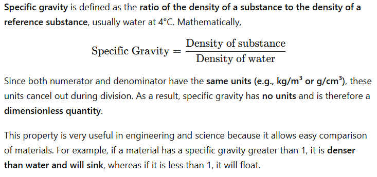 The unit for specific gravity is _____.