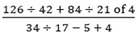 Numerator: 126 ÷ 42 + 84 ÷ 21 of 4