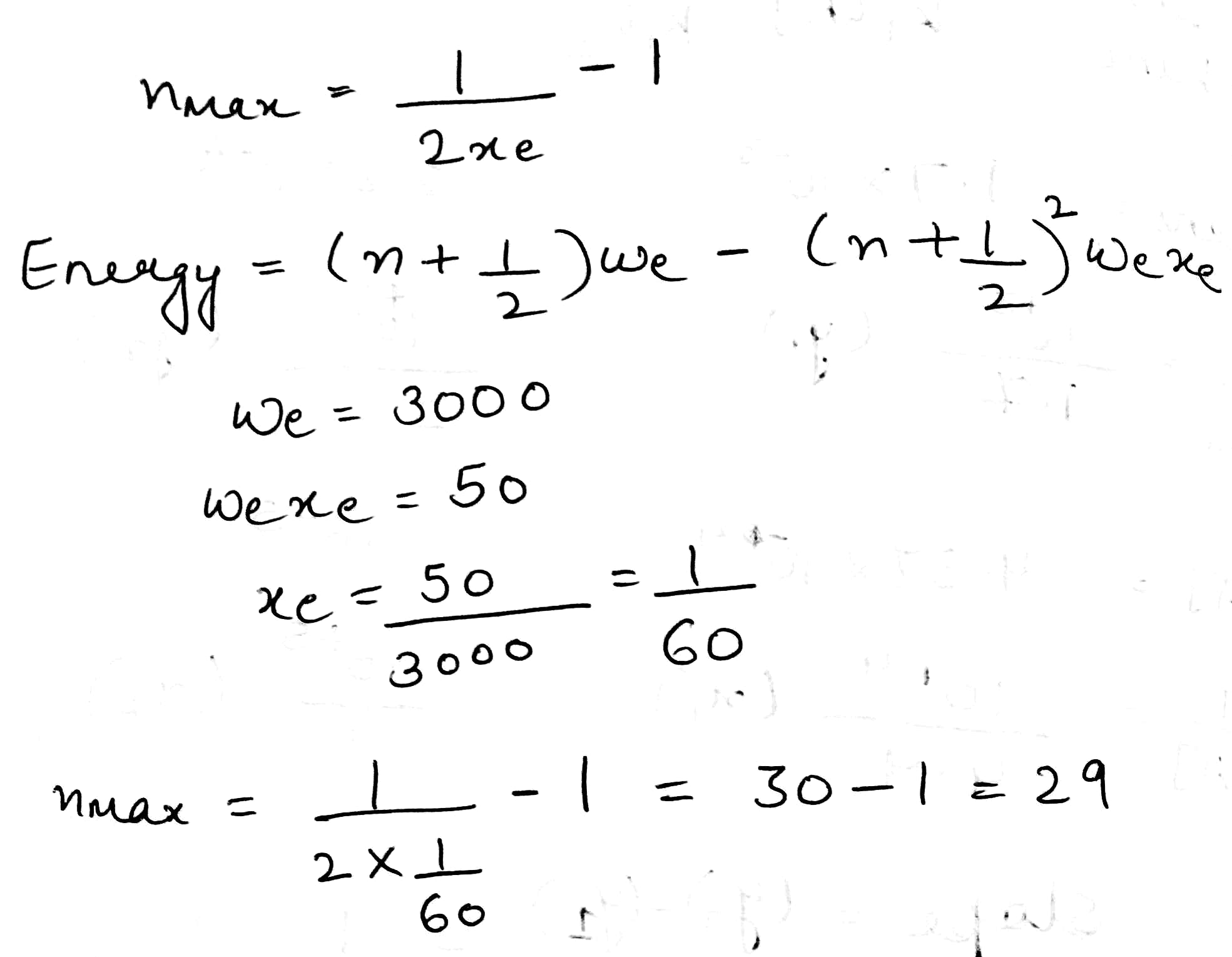 When the Schrödinger equation for an anharmonic oscillator is solved using the Morse potential energy, the energy levels are given by