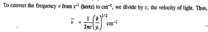 A diatomic molecule with atomic masses m1 and m2 joined by a chemical bond vibrates as a one-dimensional simple harmonic oscillator (SHO). Classically, the vibrational frequency of a mass point m connected by a spring of force constant k is given by