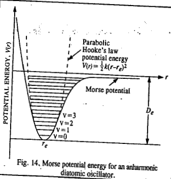In practice, the molecule does not always vibrate as a simple harmonic oscillator; there is present what is called anharmonicity. In 1929, P.M. Morse suggested an empirical expression for the potential energy of an anharmonic diatomic oscillator, given by