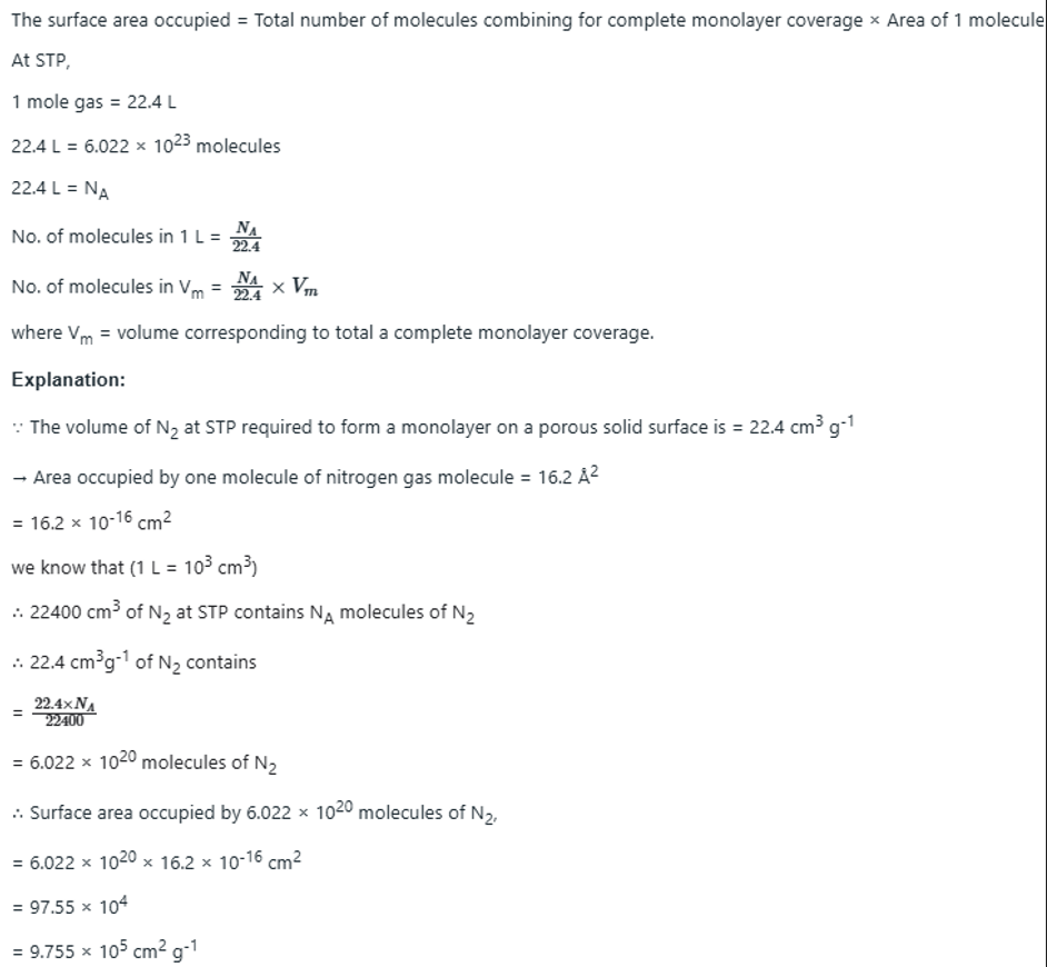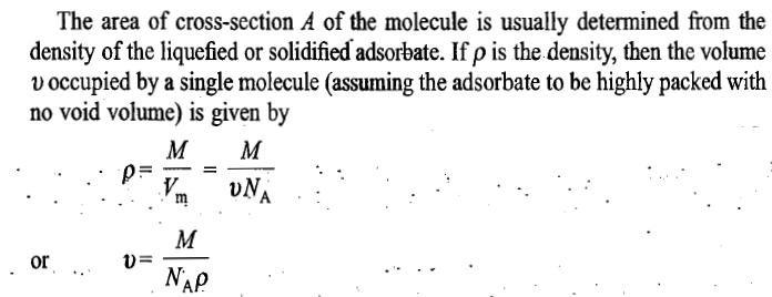 Now if the area of cross-section of a single molecule is known, it can be multiplied by the above number to give the total surface area of the adsorbent.