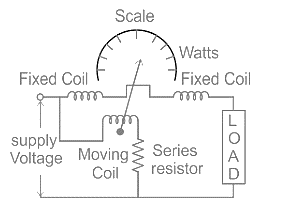 The interaction between the magnetic fields of the fixed current coil and the moving voltage coil allows the wattmeter to measure power.