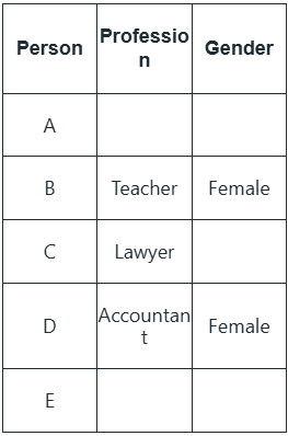 C (Lawyer): Unmarried, Gender unknown but likely male (since B and D are female)