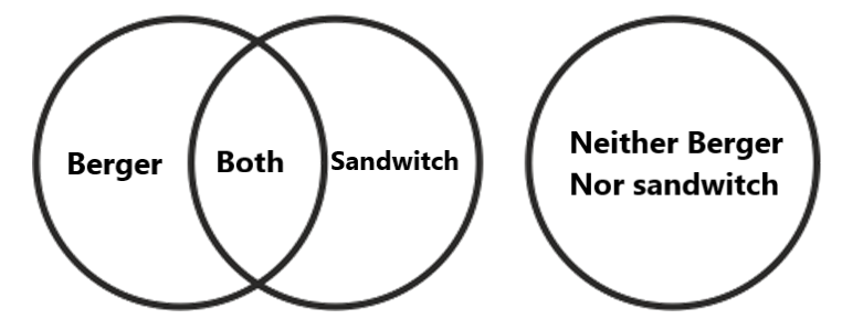 A region outside both circles representing customers who want neither a burger nor a sandwich.