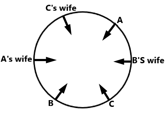 Three couples are sitting at a round table facing the centre. No more than two men (or two women) are sitting next to each other. No man is sitting next to his wife. B is sitting to the immediate left of C whose wife is sitting exactly opposite the latter. A and his wife are sitting on either side of the wife of C. Who are sitting to the immediate left and the immediate right of A?