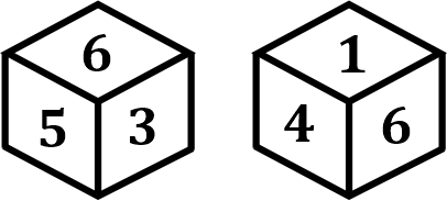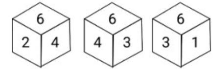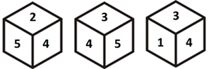 Three different positions of the same dice are shown. Find the number on the face opposite the face showing ‘2’.