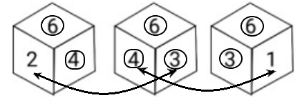 If two dice have the same face value in the given image then their clockwise or anticlockwise wise number are known as opposite numbers in dice.