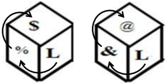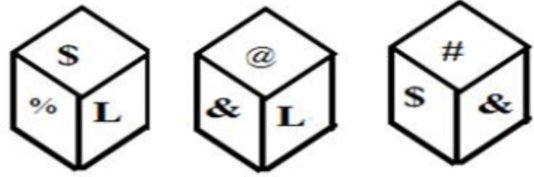 Logic: According to the dice rule, if two or three positions of the same dice are given with one common face but in different orientations, then to find the opposite pairs of faces, rotate in the clockwise direction from the common face.